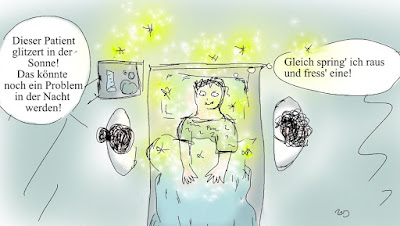 Die Nachtschwester seufzte tief, glaubte sie doch nicht an meinen Superplan, ich aber schon und zur Sicherheit ging ich eine halbe Stunde später auf die entsprechende Station um mich von der Wirksamkeit dieser klugen Anordnung zu überzeugen.