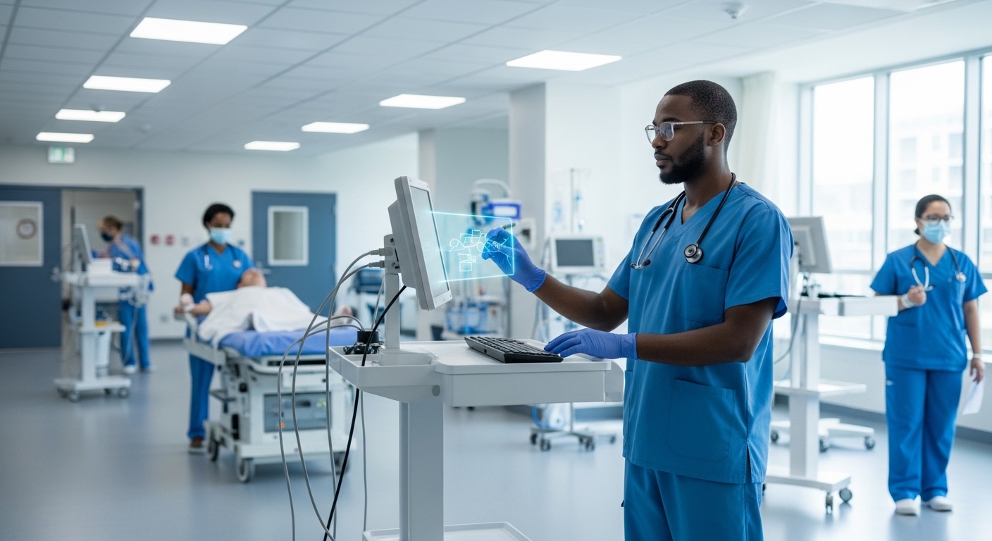 Für Mediziner könnte sich der Arbeitsplatz drastisch wandeln. Stellen Sie sich vor, Sie führen ein Anamnesegespräch. Anstatt währenddessen in den Computer zu tippen, hört ein im Hintergrund laufendes System (unter strikter Einhaltung des Datenschutzes) zu, transkribiert das Gespräch, extrahiert relevante Symptome, gleicht diese in Echtzeit mit der elektronischen Patientenakte ab und schlägt noch während des Gesprächs relevante Differenzialdiagnosen oder fehlende Untersuchungen vor. Das ist keine Science-Fiction, sondern das erklärte Ziel dieser Technologie-Fusion. Die administrative Last, die oft bis zu 40 % der Arbeitszeit eines Arztes bindet, könnte massiv reduziert werden. Arztbriefe, Kodierungen für die Abrechnung und Überweisungen könnten zu 90 % automatisiert vorbereitet werden und müssten nur noch signiert werden.